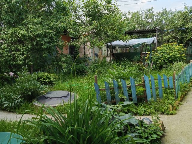 Участок 6 соток, огорожен металлопрофилем, площадка для стоянки авто под навесом.