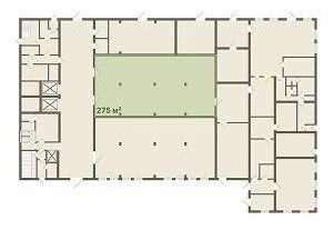 Планировка — зальная, высота потолков — 4,5 м — подходит для стеллажного хранения.