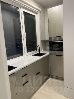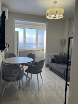 Кухня площадью 14 м² оборудована всем необходимым: современная встроенная кухня с качественной фурнитурой, холодильник и варочная панель. Во всех комнатах и кухне установлены кондиционеры, а также имеется удобный диван и обеденный стол с креслами.