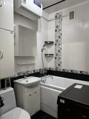 Квартира с хорошим ремонтом, в комнате и на кухне есть вся необходимая мебель: встроенная кухня, холодильник и стиральная машина. в комнате диван, шкаф. Санузел совмещен и оборудован ванной. Просторная прихожая: вешалка для одежды, тумба.
