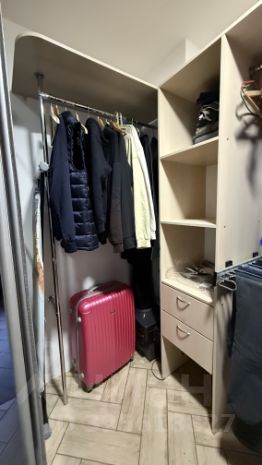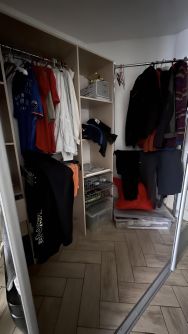 В квартире нет массивных шкафов, в коридоре (см. фото) это сборная система, достаточно вместимая конструкция, позволяющая хранить необходимую одежду на сезон.