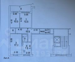 Комнаты изолированные 12.5 кв.м, 10 кв.м и 17,2 кв.м. Раздельный санузел, кухня 7,5 кв.м.