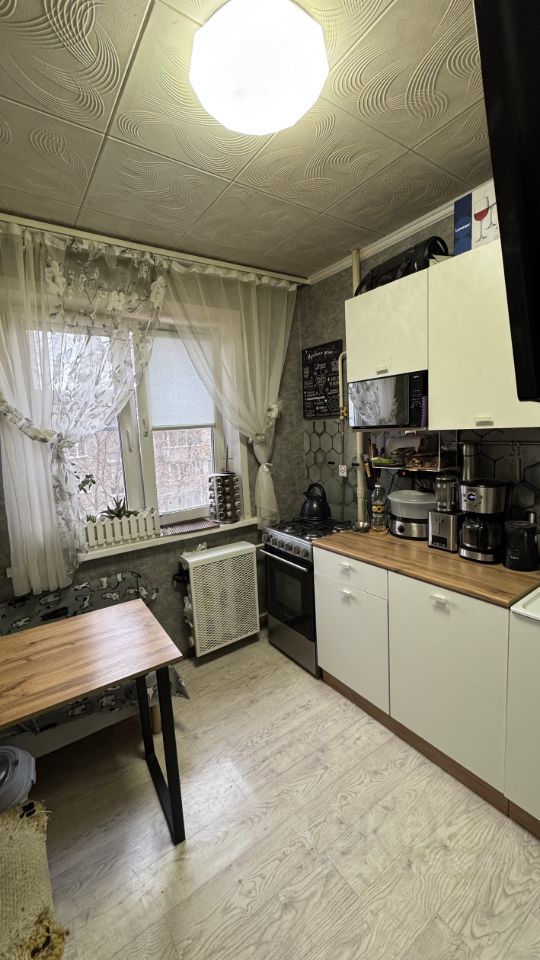 Уютная квартира. Между домом и дорогой расположена широкая дворовая зона с детской площадкой и деревьями. Окна квартиры выходят на противоположную сторону от дороги, в тихий зеленый двор.