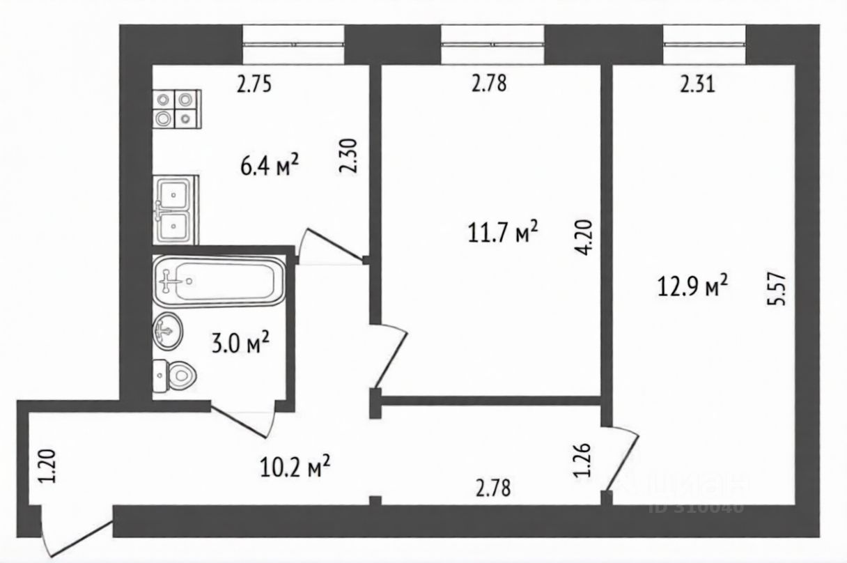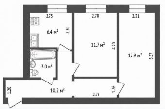 Две изолированные комнаты (12,9 и 11,7 кв.м.)