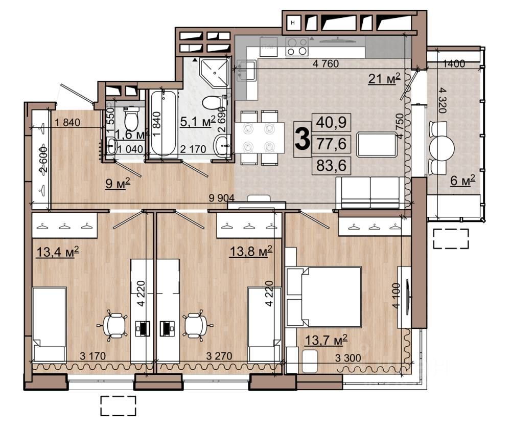 Общая площадь83,6 м²