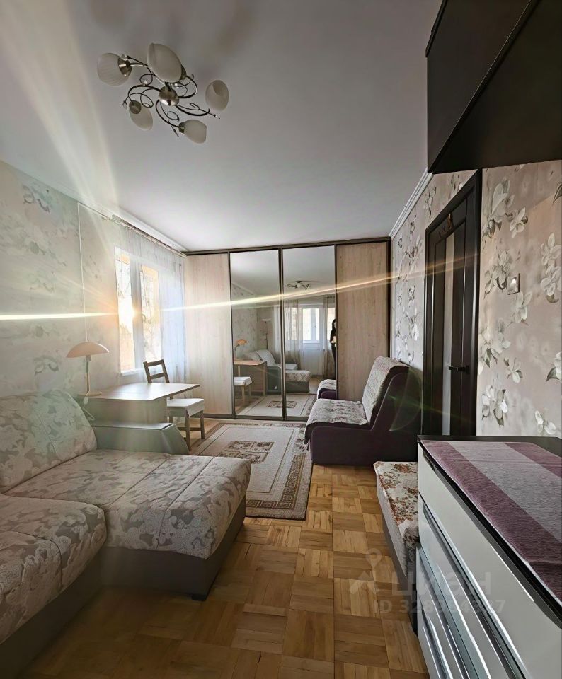 Комната 19 кв.м- просторная, светлая, с двумя окнами, балкон. При желании можно отделить часть комнаты для отдельной приватной ниши (есть окно), огромный зеркальный встроенный шкаф.