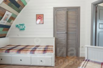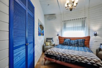 Планировка:1 этаж (потолки 3,2 м): прихожая с гардеробом, котельная/постирочная, кухня-столовая с зоной отдыха и вторым светом (7 м), гостевой санузел, спальня с гардеробной и своим с/у.2 этаж (потолки до 3,4 м): мезонин, кабинет, санузел, две спальни с гардеробами, одна из которых с ванной комнатой.