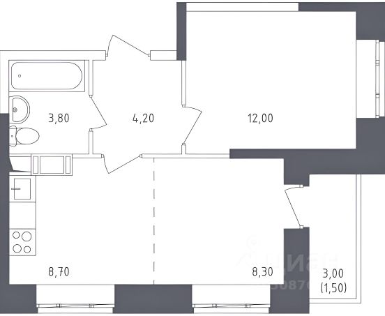 От года, комм. платежи включены (без счётчиков), без комиссии, залог 90 000 ₽
