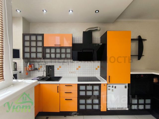 Кухня с подсветкой рабочей зоны и оснащена (плита, духовка, микроволновка, холодильник, посудомойка, электрочайник)